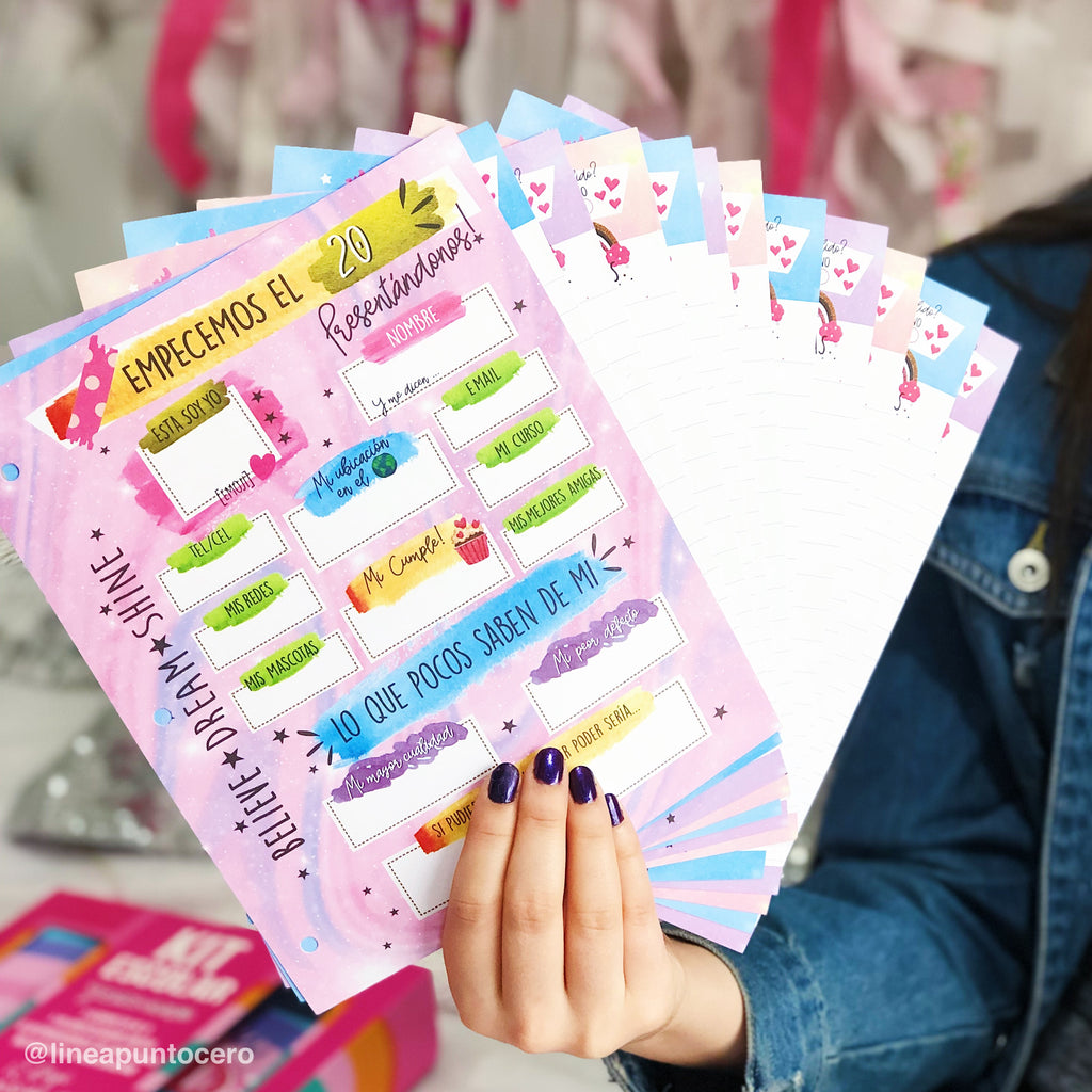 ESTE KIT TIENE TODO LO QUE NECESITAS PARA CLASES! Una carpeta Nº3 3 anillos, Un planificador anual para la carpeta Nº3 3 anillos, Un Pack x96 hojas Nº3 con el borde con diseño, Un Pack x6 separadores de materia ¡TODO HACIENDO JUEGO!