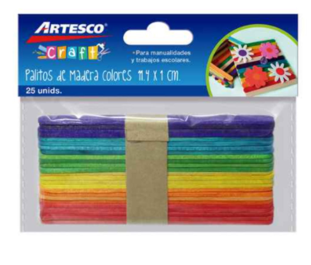 Palilla Plana de Madera de Diferentes Colores 25 Piezas Artesco