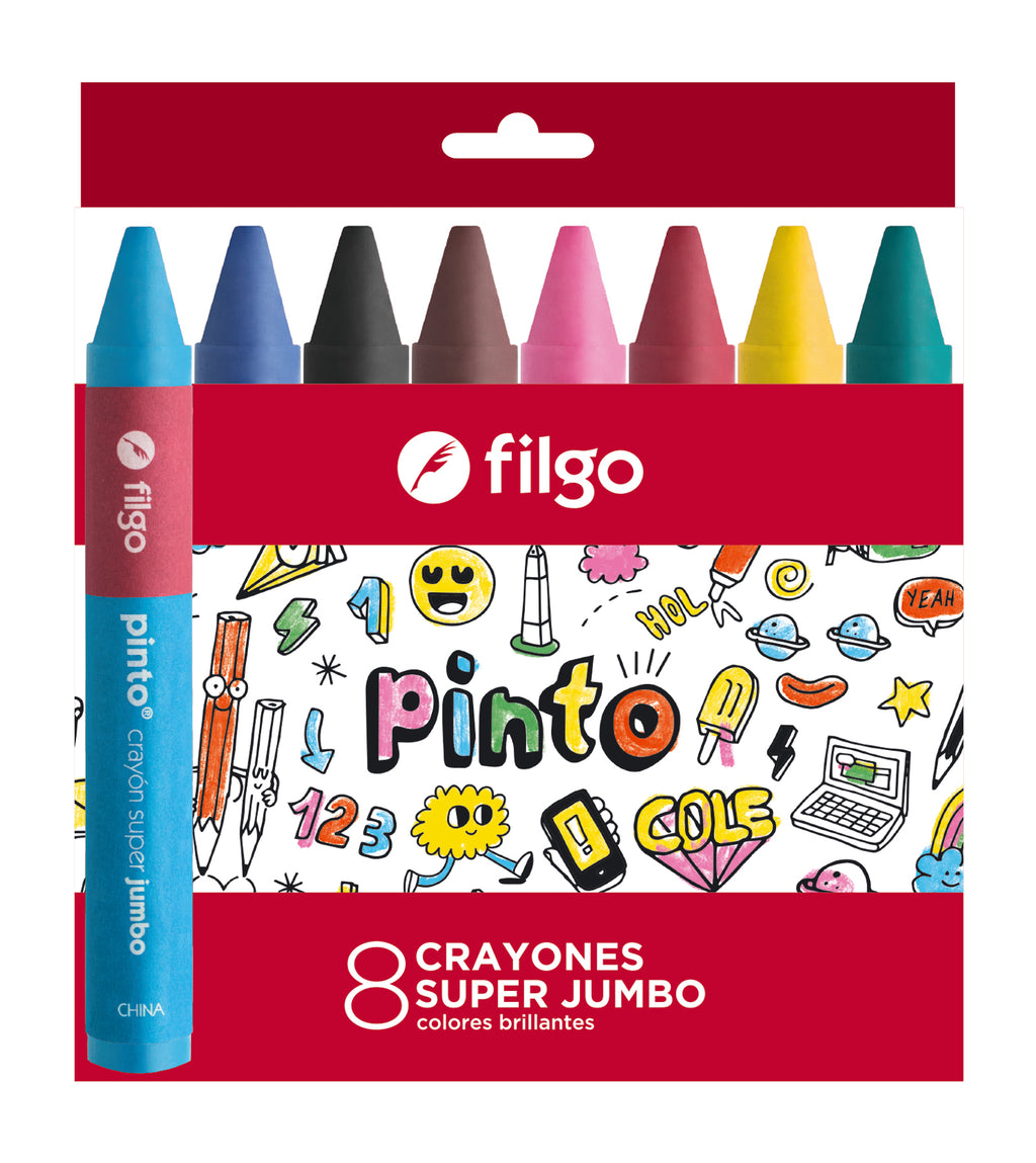 Crayones de cera formato SUPER JUMBO, ideal para los primeros trazos de los más pequeños en colores intensos y luminosos. Recubiertos en papel para mejorar el agarre y elaborados en cera de alta calidad con pigmentos ATÓXICOS. Cuentan con una gran capacidad cubritiva y son fáciles de sacar punta para que colorees el tiempo que quieras.