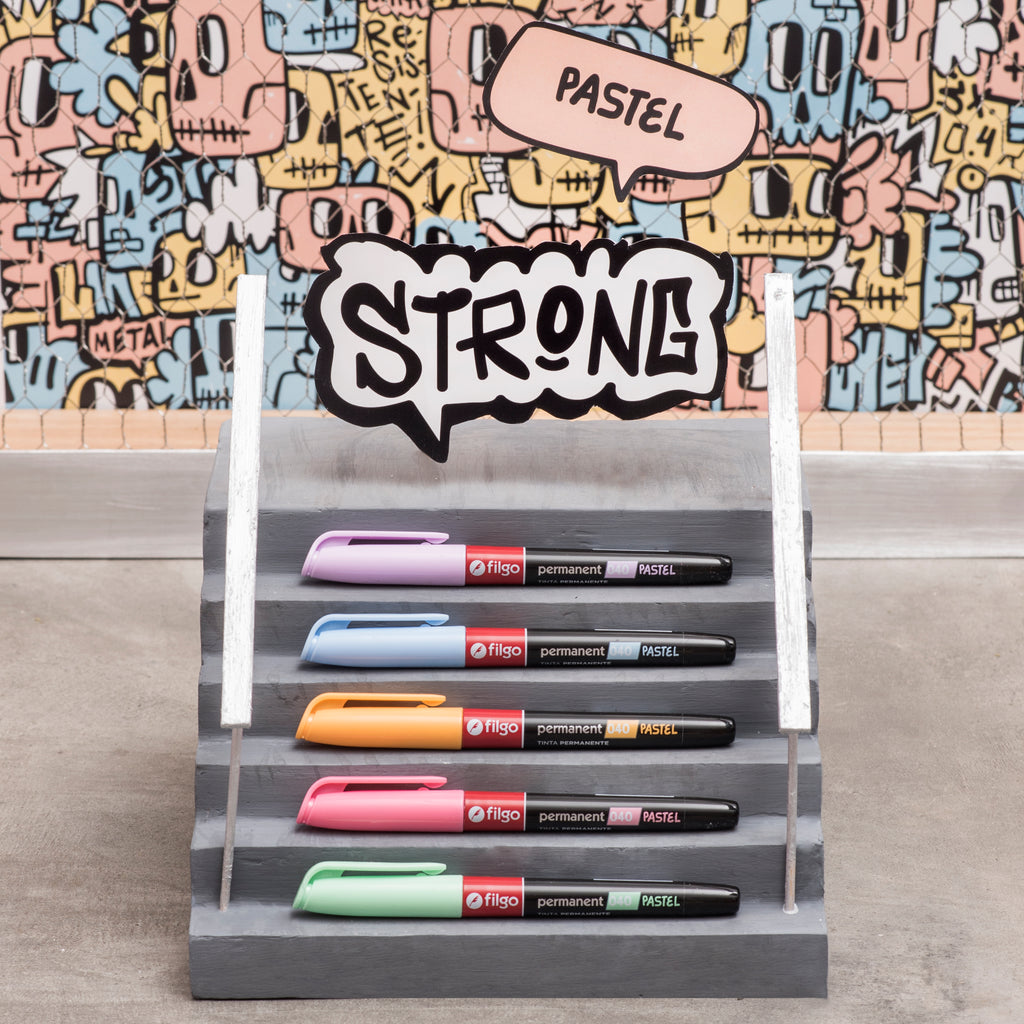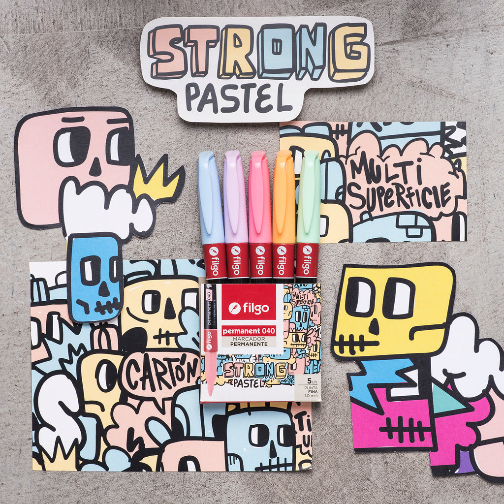 Marcador permanente que escribe sobre cartón, metal, vidrio, plástico, cerámica y otras superficies. Tinta a base de alcohol, sin xyleno ni toluen.  Set de 5 colores pasteles que serán el complemento perfecto para tus obras de arte.