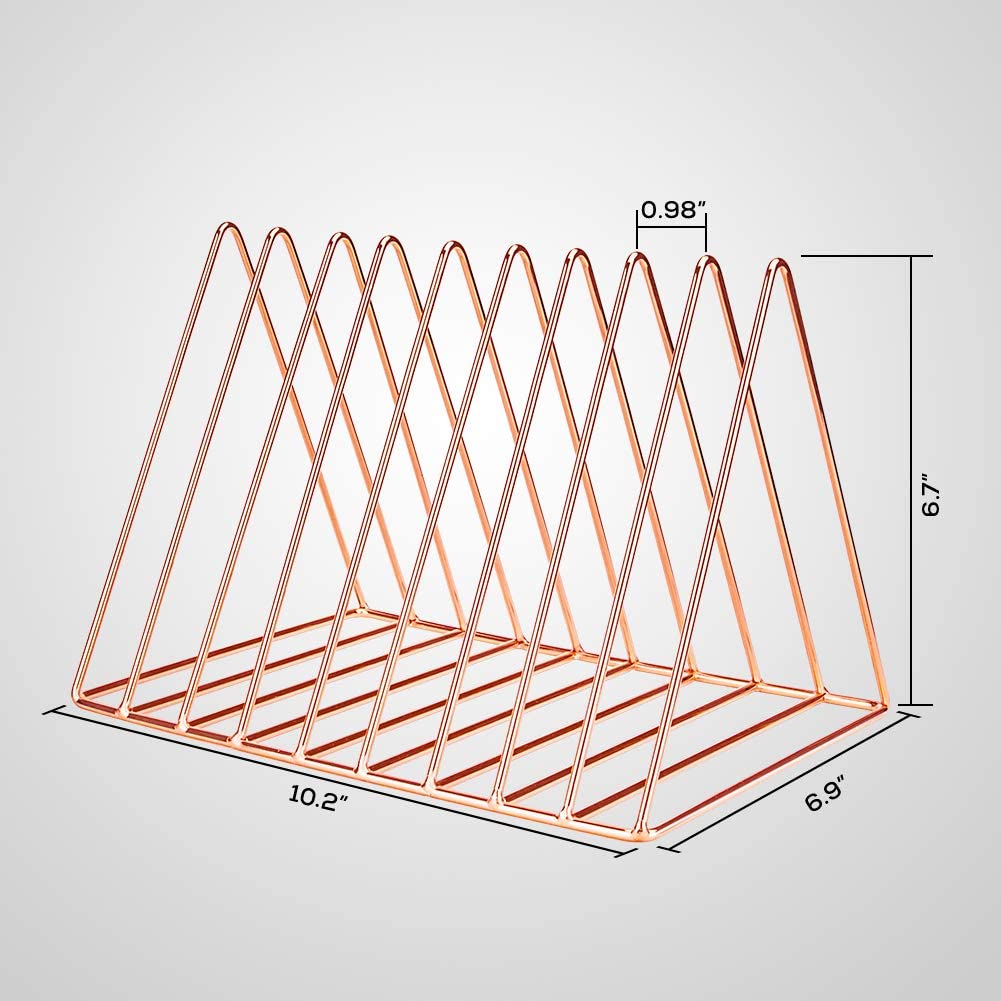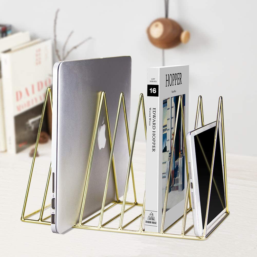 Agrega un toque de elegancia a tu estación de trabajo o estantes que utilizas para guardar libros, revistas y demás con este organizador triangular de metal en color dorado que contiene 09 espacios de almacenamiento.
