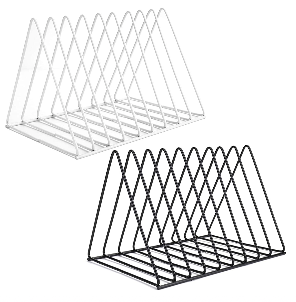 Moderniza tu forma de archivar con estos organizadores triangulares hechos de alambre de hierro de alta calidad, resistente y fácil de limpiar. La forma de triángulo mantiene una gran estabilidad, no es fácil de inclinar y caer. Su diseño minimalista combina el concepto vanguardista con el estilo nórdico, simple y generoso que contiene 09 ranuras para almacenaje con una distancia de 1 pulgadas entre ellas.
