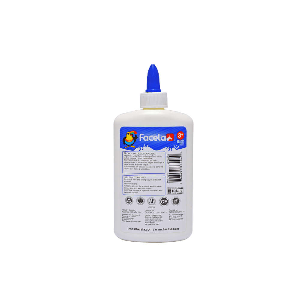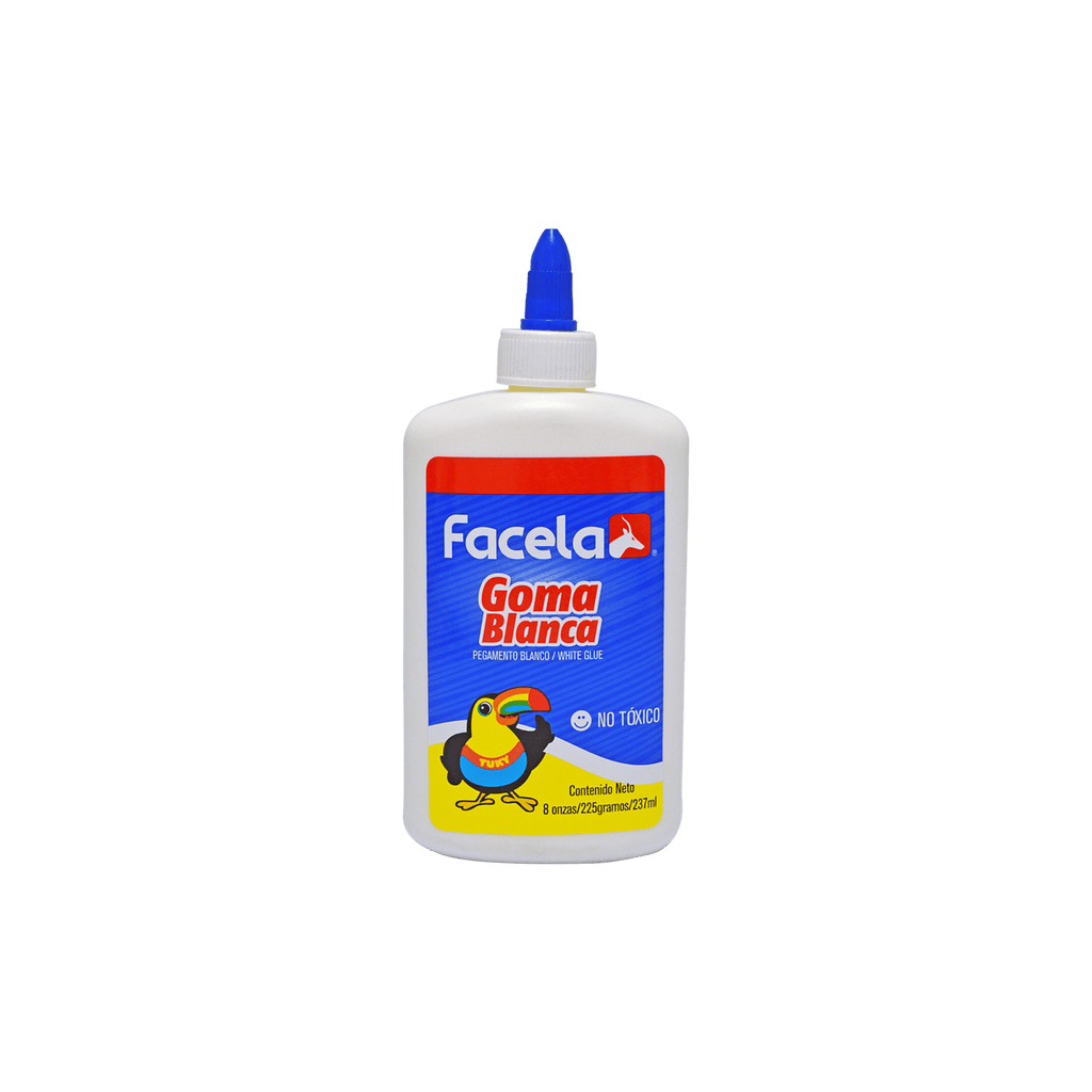 Pegamento Escolar Facela  de 8 Onzas en una presentación con diseño ergonómico para que tu comodidad y fácil manipulación.
