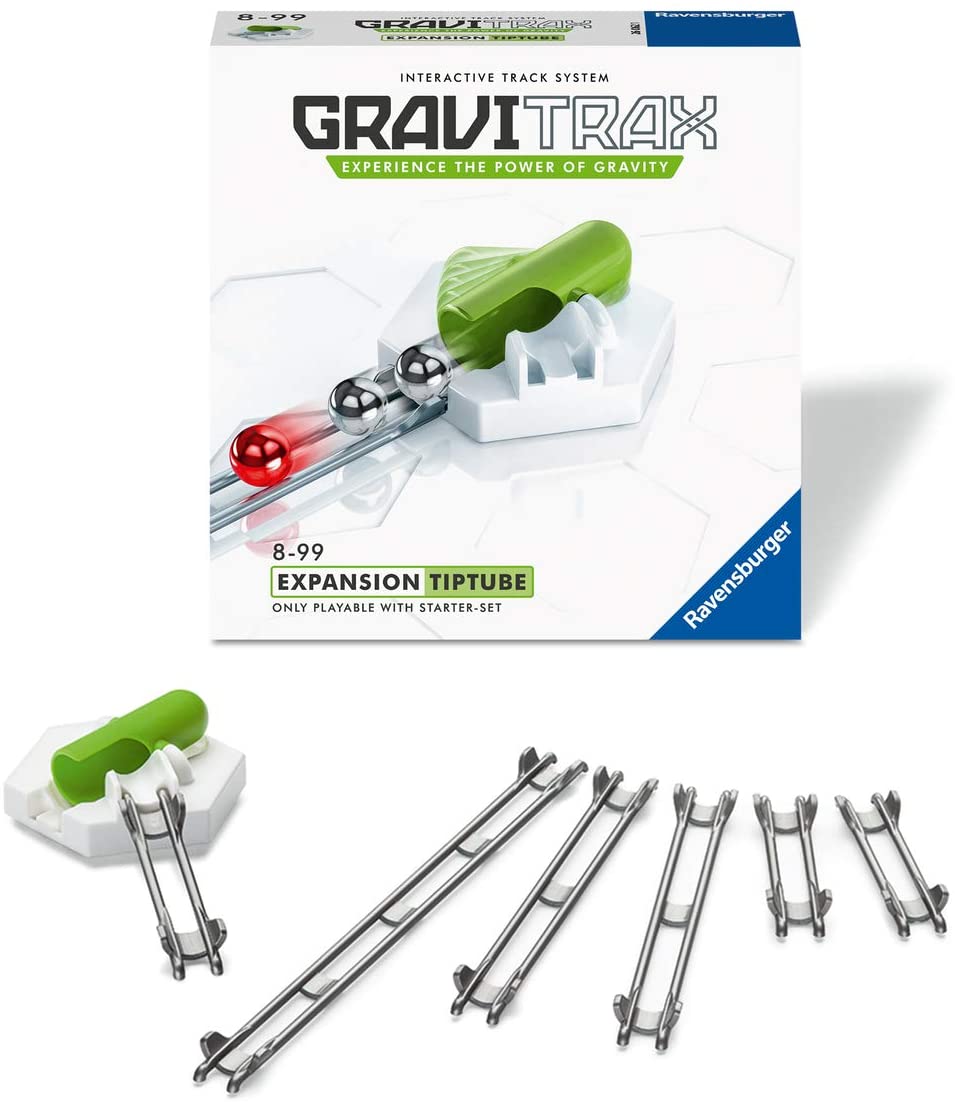Complementa tu set de Gravitrax con este accesorio que impulsa su bolita de acero e incrementa la complejidad de su creación. Incluye 7 piezas de ensamblaje: 1 una pieza para voltear, 1 carril largo, 2 carriles medios, y 3 carriles cortos. Sigue innovando y construyendo con este fantástico juego considerado uno de los mejores de su categoría por la Feria de Juguetes en Nueva York.