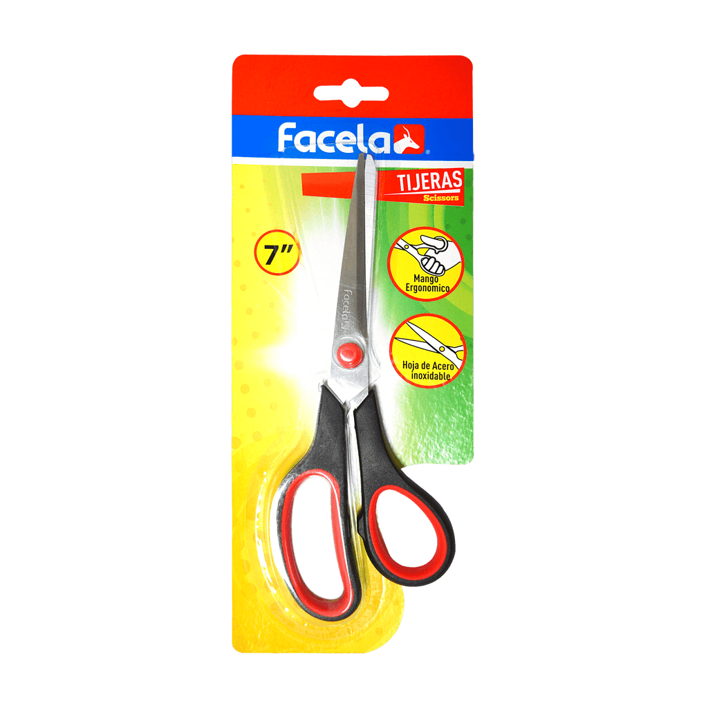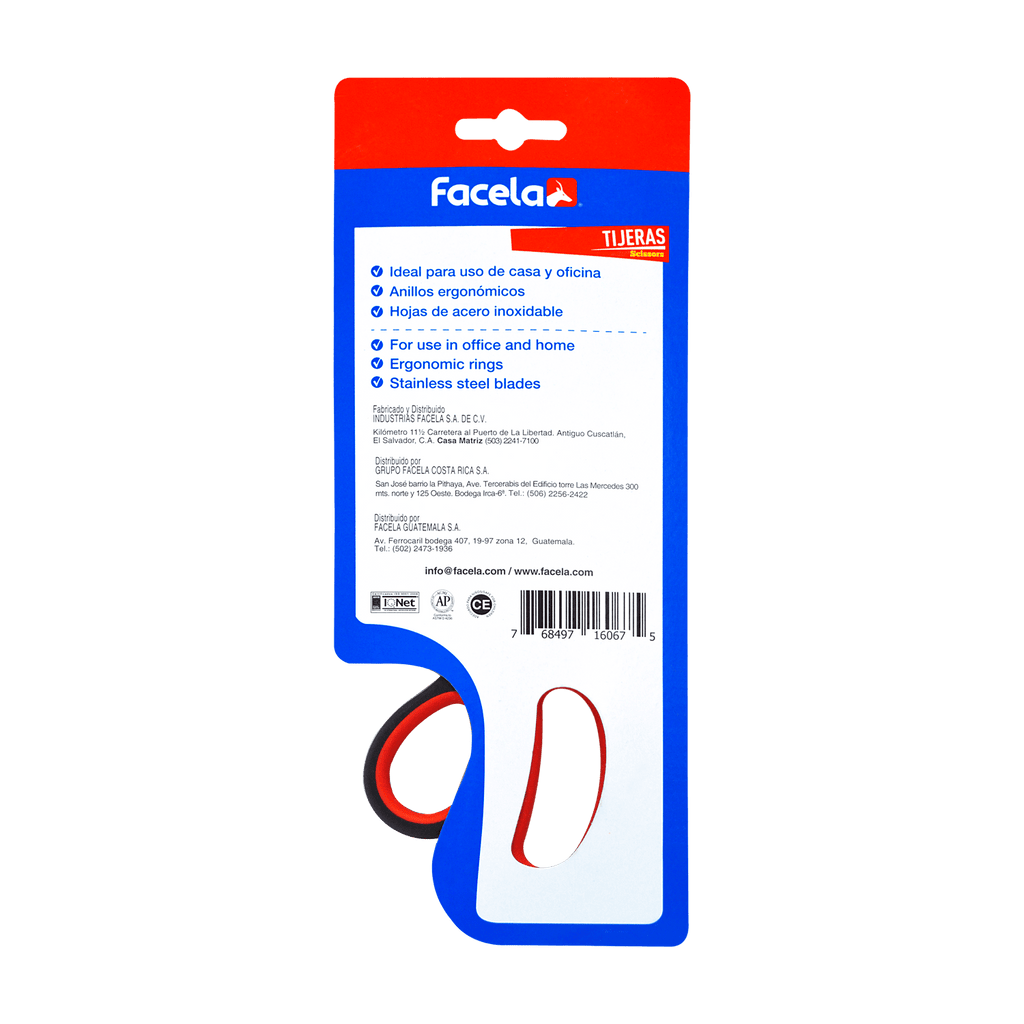 Tijera ergonómica multiuso de 8.5 pulgadas. con anillos ergonómicos que brindan comodidad y facilidad de agarre. Contiene hojas de acero inoxidable que ayudan a mantener el filo, ideal para su uso en escuelas, universidades y oficinas.