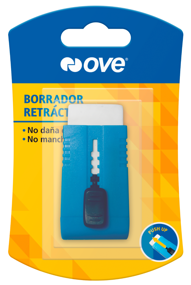 Borrador blanco retráctil que no daña, ni mancha el papel.
