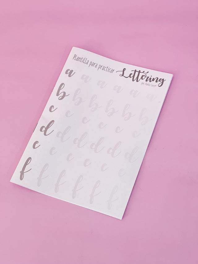 ¡Perfecta si querés comenzar con el lettering! Un cuaderno A5 tapa dura con hojas de puntos guía de 106 gramos, 5 planchas de stickers, Una plancha de formas tipo stencil para títulos y formas Mini guía para practicar lettering.