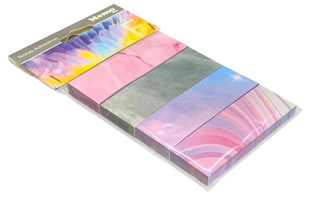 Pack x 4 Unidades de notas adhesivas 2.5 x 7.5cm que contiene 80 hojas cada uno en 4 diferentes diseños.