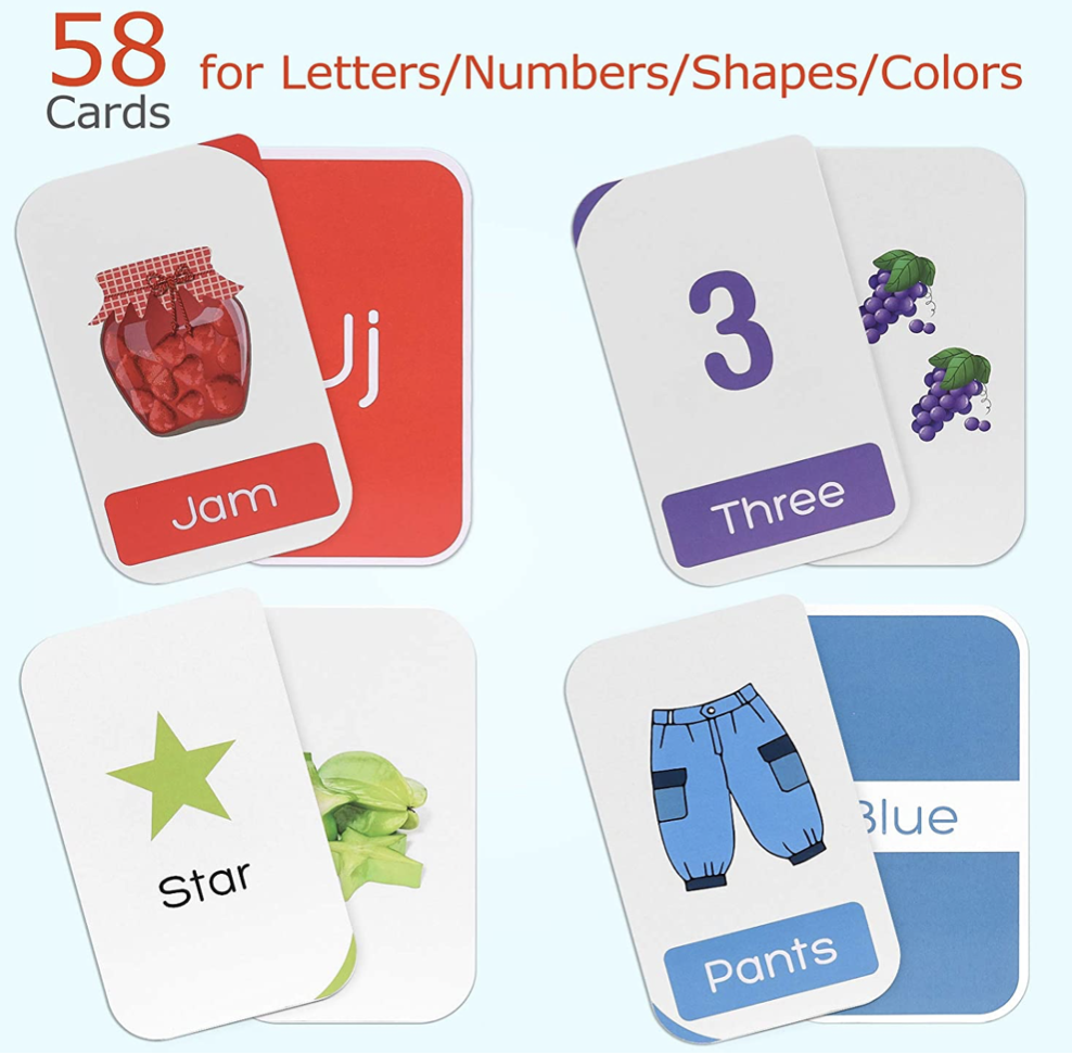 Practicar con los 4 juegos diferentes de tarjetas de aprendizaje de Gamenote doble cara para niños, es la manera perfecta de introducir conceptos básicos que cada niño necesita saber antes de entrar a la escuela. El set incluye en inglés: letras (26 tarjetas), números (10 tarjetas), colores (10 tarjetas) y formas (12 tarjetas). Encantadoras ilustraciones a todo color que ayudan a los niños. Material resistente y de alta calidad con puntas redondas y laminadas para protección contra salpicaduras.